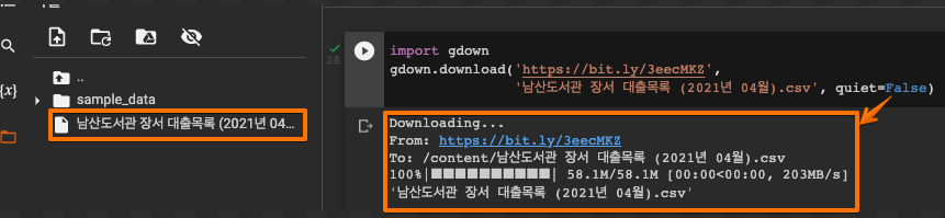 - 실행을 하면 /content/남산도서관~~.csv형태의 위치에 저장됨