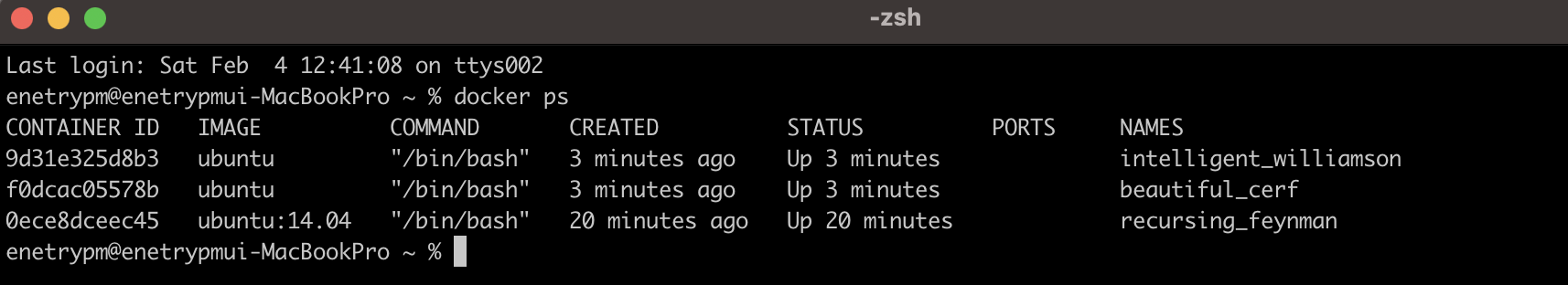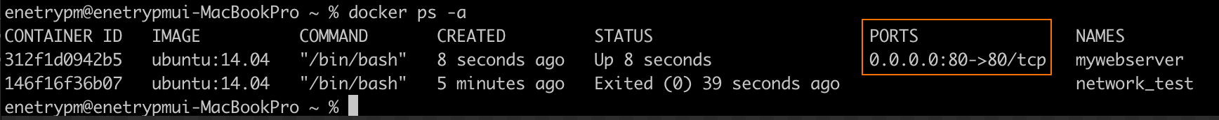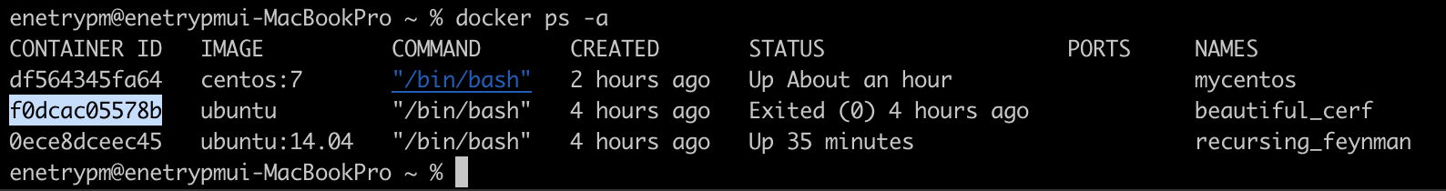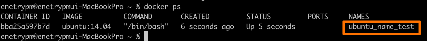 | enetrypm@enetrypmui-MacBookPro ~ % docker run -i -t --name ubuntu_name_test ubuntu:14.04 root@bba25a597b7d:/# ![]() |