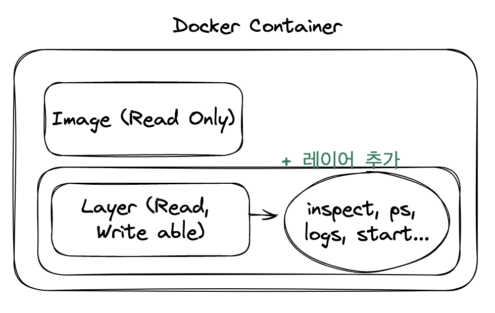 - 정의 : (도커 이미지 + 필요한 설정 파일)을 통해서, 격리된 시스템 자원 및 네트워크 사용할수 있는 공간 생성
