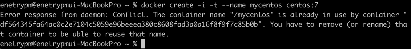 | enetrypm@enetrypmui-MacBookPro ~ % docker start mycentos mycentos ~~~ enetrypm@enetrypmui-MacBookPro ~ % docker attach mycentos [root@df564345fa64 /]# [root@df564345fa64 /]# [root@df564345fa64 /]# |