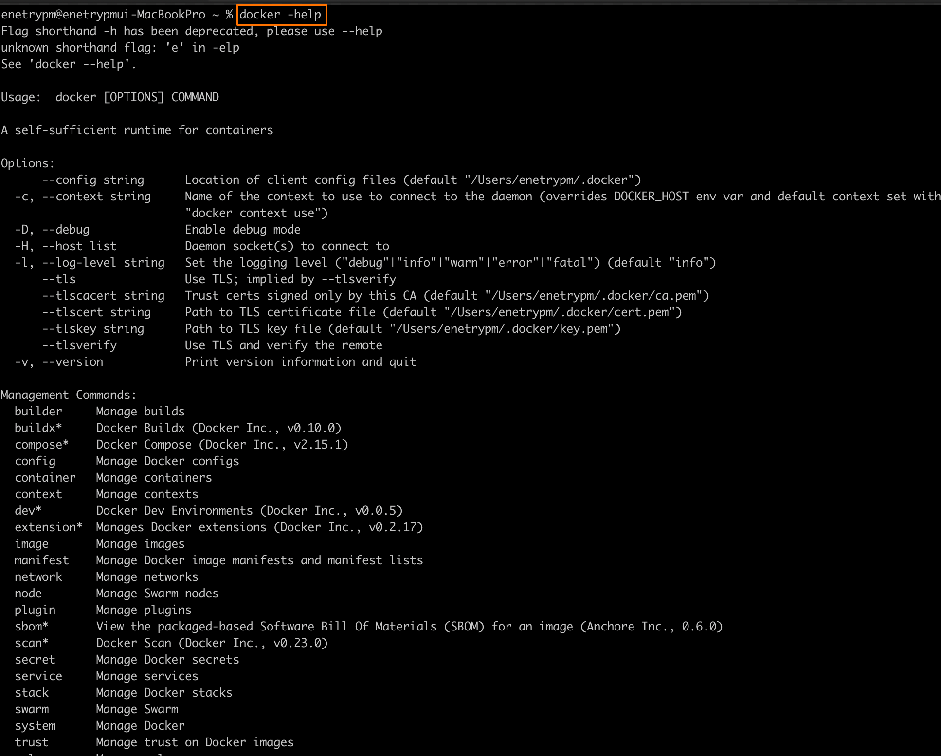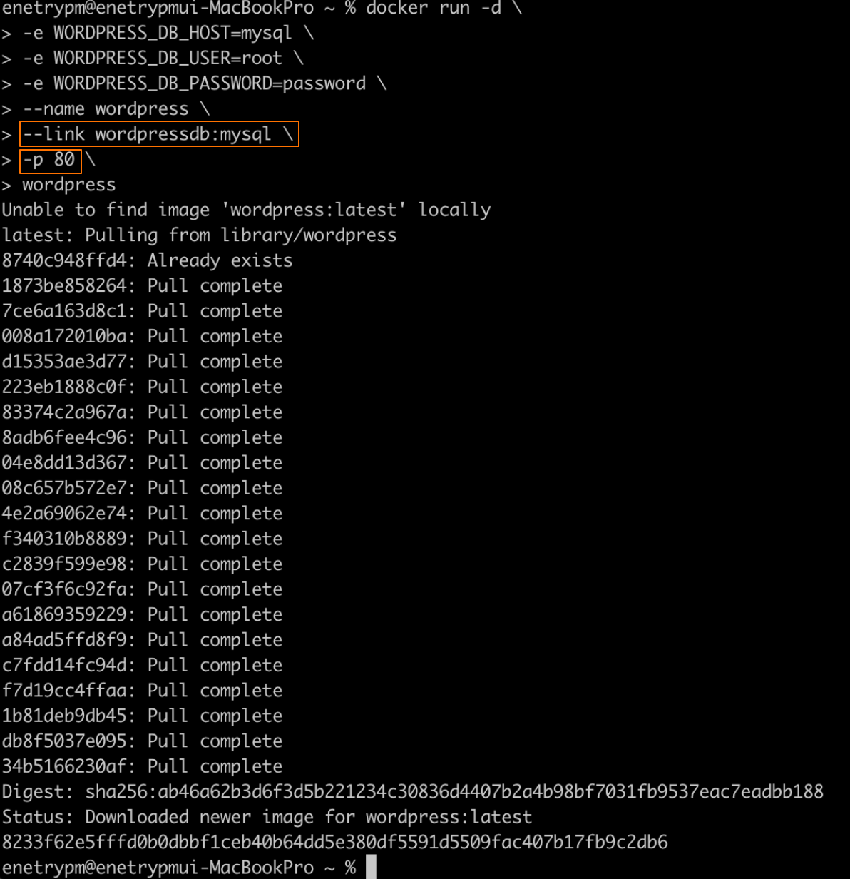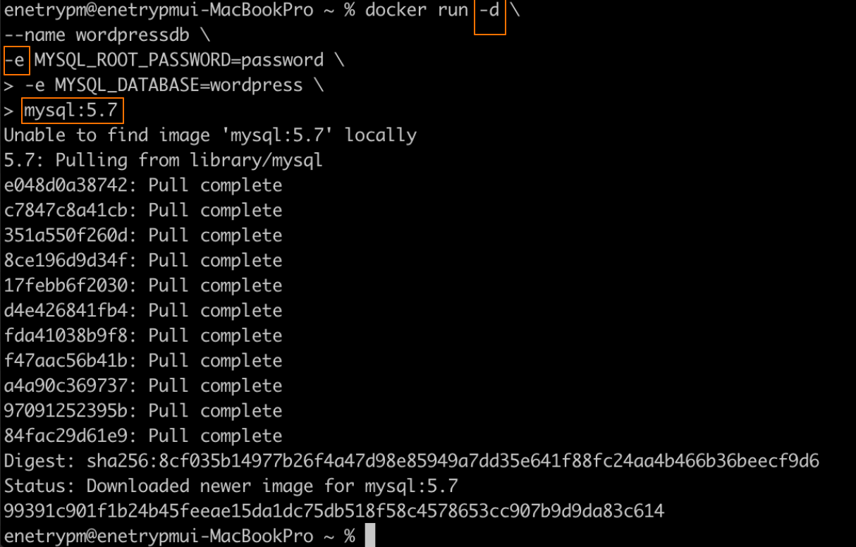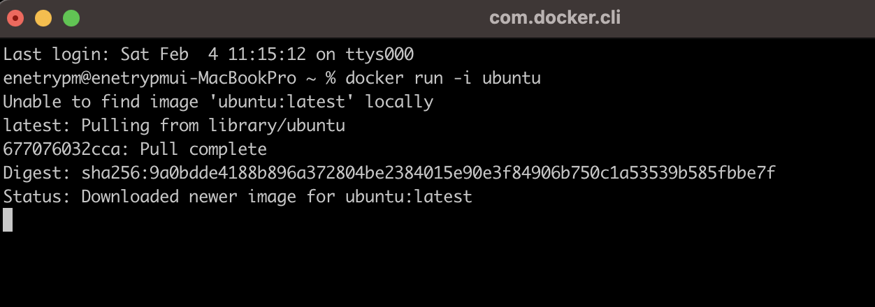 | enetrypm@enetrypmui-MacBookPro ~ % docker run -i -t ubuntu:14.04 Unable to find image 'ubuntu:14.04' locally 14.04: Pulling from library/ubuntu 2e6e20c8e2e6: Pull complete 0551a797c01d: Pull complete 512123a864da: Pull complete Digest: sha256:64483f3496c1373bfd55348e88694d1c4d0c9b660dee6bfef5e12f43b9933b30 Status: Downloaded newer image for ubuntu:14.04 root@0ece8dceec45:/# |