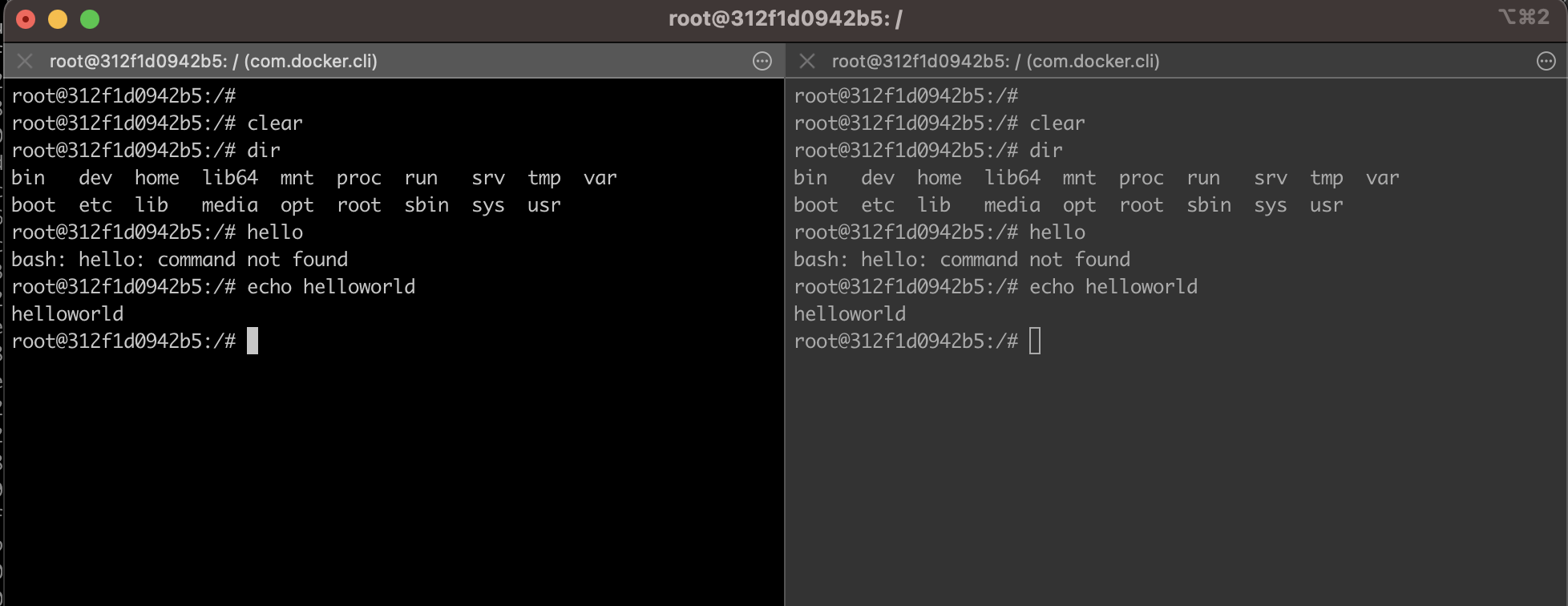 - p.54, 이렇게 함께 사용하면, Container내부에서 셀을 실행하지만, 내부로 들어가지 않으며, 종료가 되지 않습니다.
