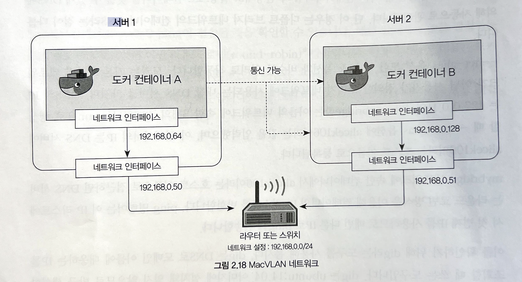 - 기본적인 172.17.x.x가 아닌 네트워크 강비의 IP를 할당받는다.