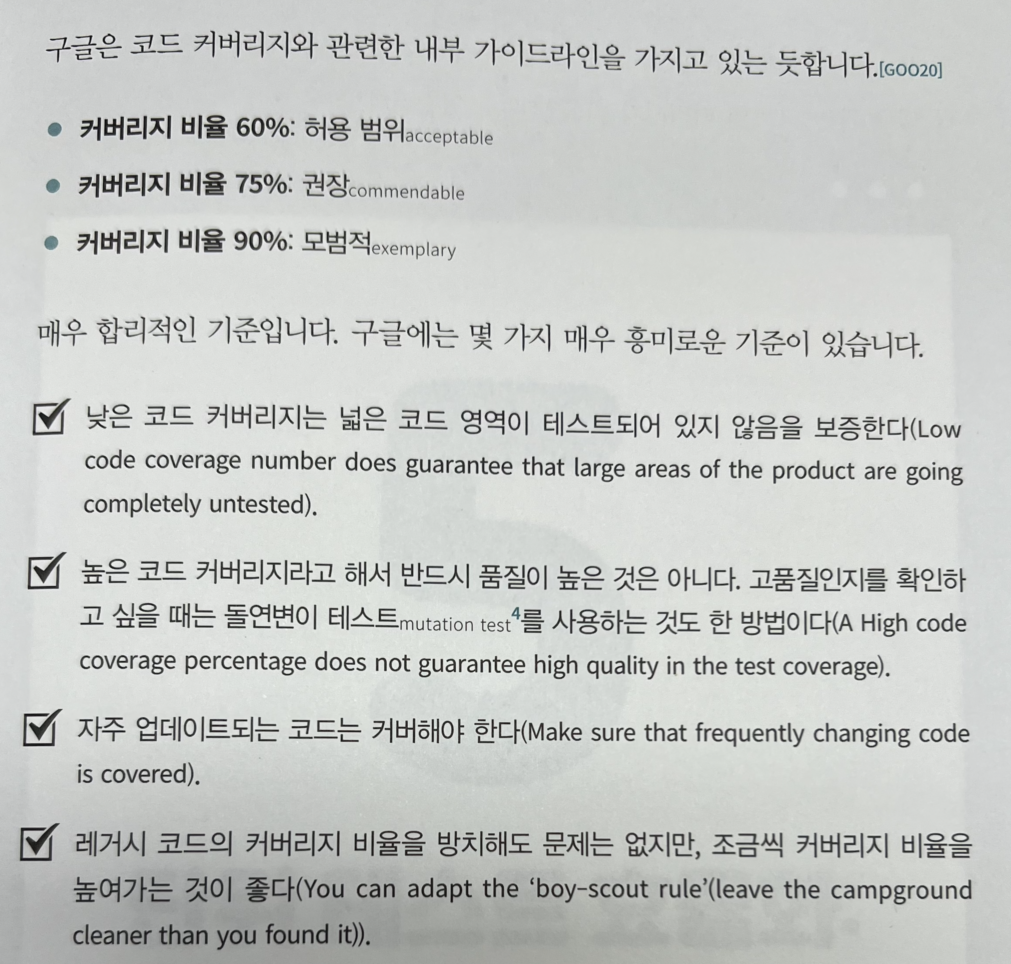· 커버리지 비율 : 80%라고 설명됨 (소스코드의 20%정도는 에러 핸들링 처리인 만큼, 그 코드까지 단위 테스트로 커버할 필요가 없음)