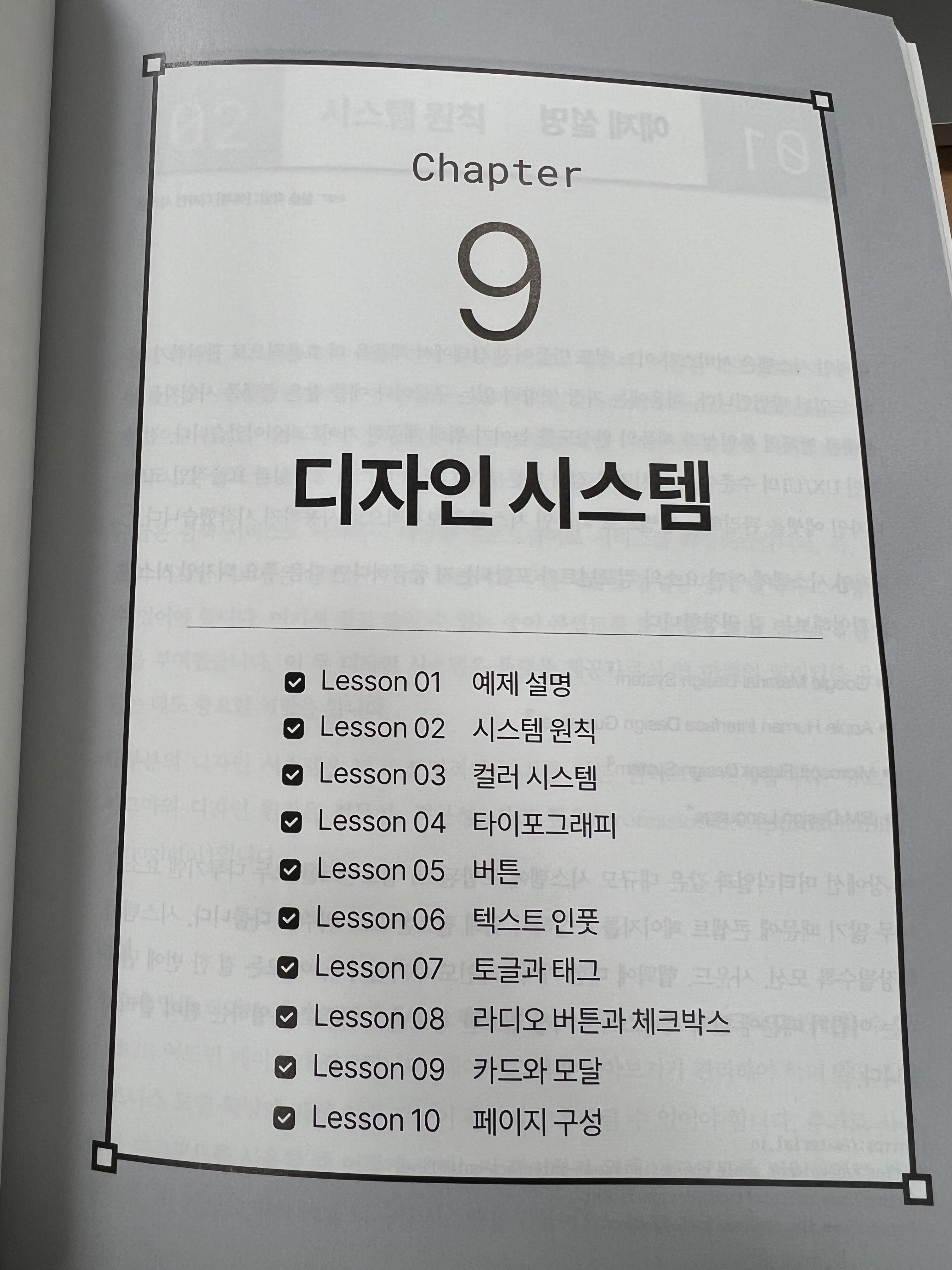 · 9장에서 소개되는 요서는 Figma에 종속적이지 않지만, 가장 많이 사용하는 항목들인데 그것들에 대한 디자인에 대한 원칙 및 기준을 제시하는 부분이라서 많이 생각할 수 있고, 한번 익히고 배워놓으면 계속 사용하게 될 내용으로 구성되어 있습니다.