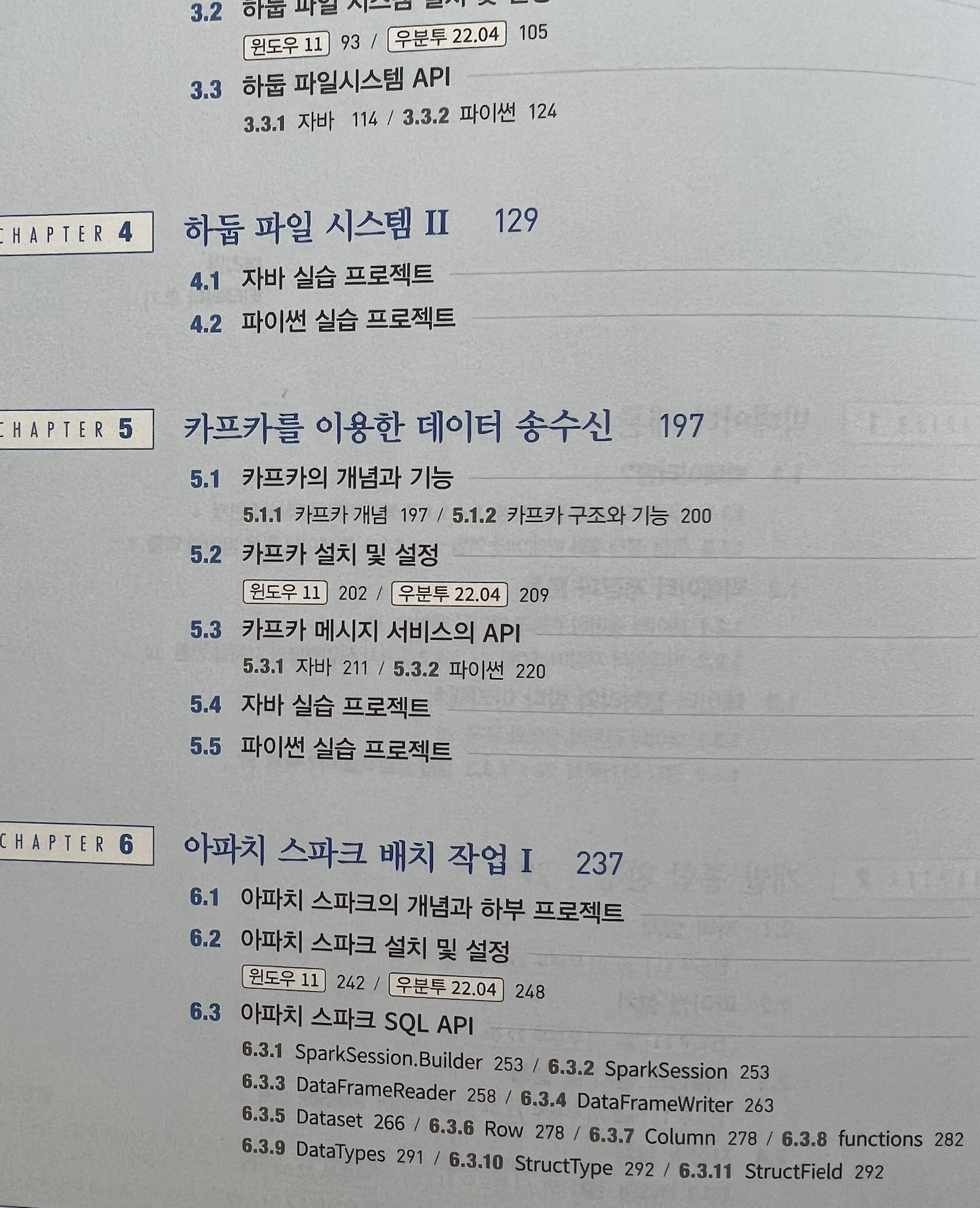 · 책의 목차부분인데, 여러가지 빅데이터 관련 시스템에 대해서 Java, Python의 언어로 프로젝트의 예시로 구성하고 있는것을 알수 있습니다.