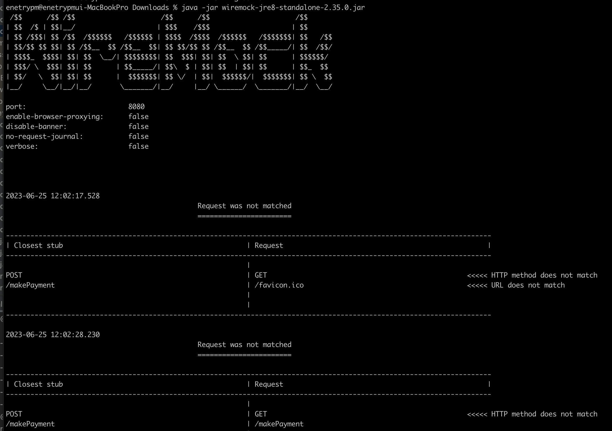 wiremock에 대해서 실행해본 화면 "여기서는 stub을 잘 만드는것이 핵심으로 보입니다"