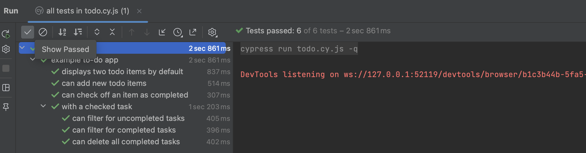 · Cypress에서도 테스트 케이스를 생성해서, Junit처럼 테스트 결과를 확인할수 있습니다.