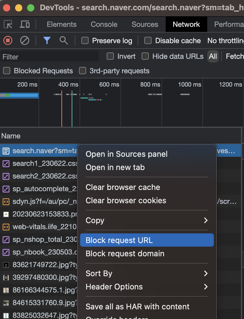 1) 느린 네트워크 환경 테스트