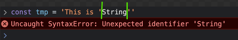 - 해당 문자열을 ('This is ') ( '' )으로 2개로 구성되어서 String이라는 것은 식별을 못하는 구문오류가 발생