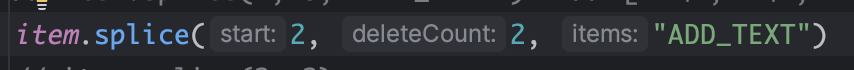 item.splice(2, 2, "ADD_TEXT") // [ '가', '나', 'ADD_TEXT', '마', '바', '사' ]. 2개의 항목 (다,라)가 삭제된 예시