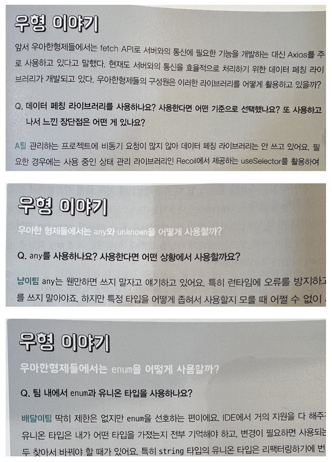· 우형에 고민했던 현실적인 이야기들이 책의 곳곳에 있습니다. 여러가지 "우형 이야기" 중에서 평소에 고민을 해보았던 내용이 있다면
