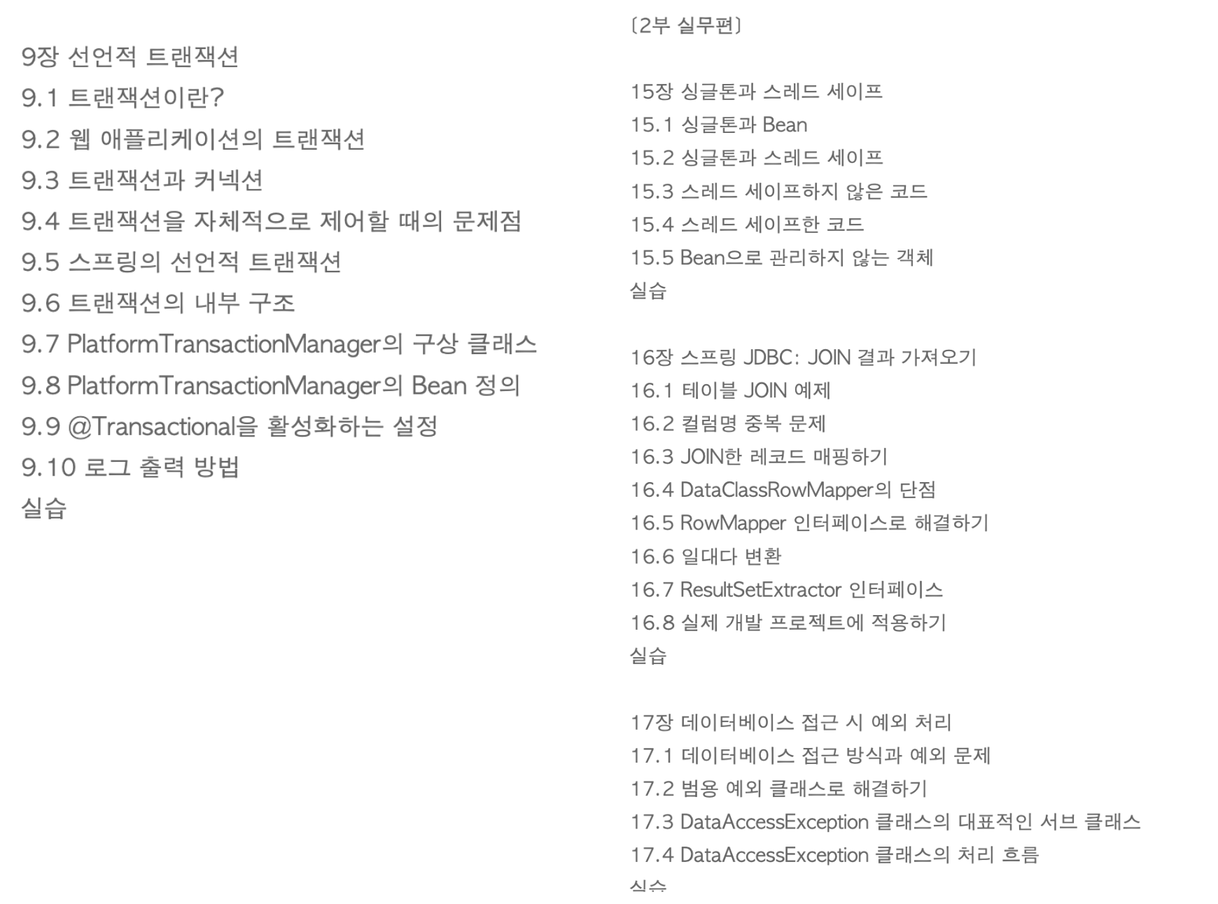 목차를 살펴보시면, 현재 스프링에 대해서 살펴봐야 하는 깊이 있는 개념들이 잘 구성되어 있고