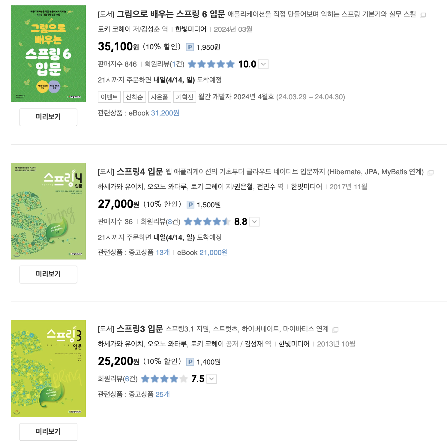 책의 저자분은 일본저자 분이시고, 기존에도 다양한 스프링 버전의 책을 출간하시면서,