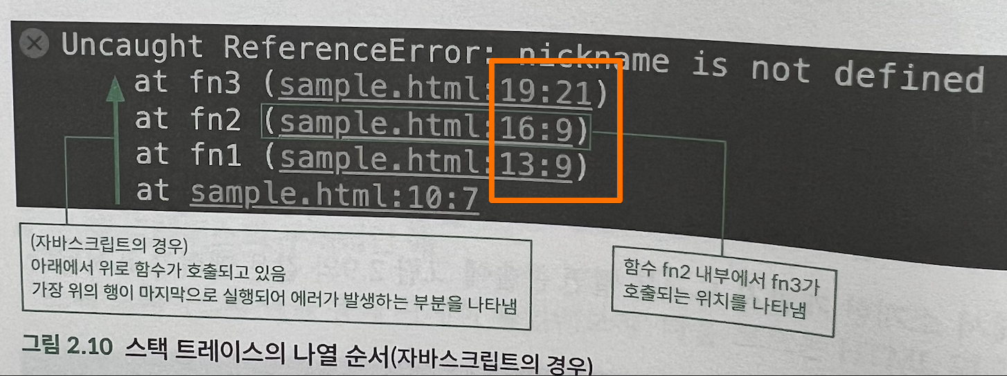 스택 트레이스는 호출되는 순서대로 쌓이는 부분입니다.