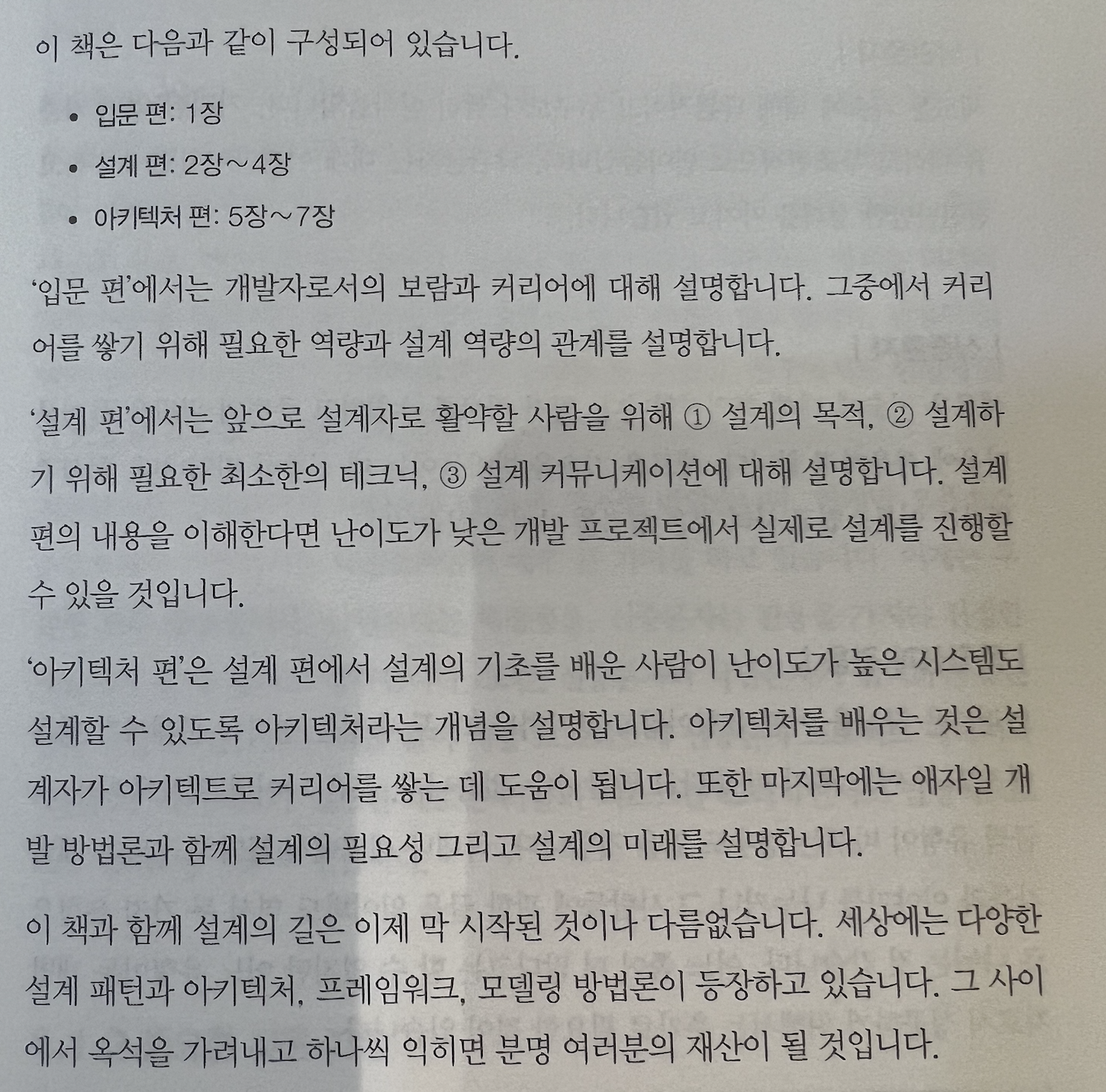 입문 / 설계 / 아키텍처 편으로 구성되어 있습니다.
