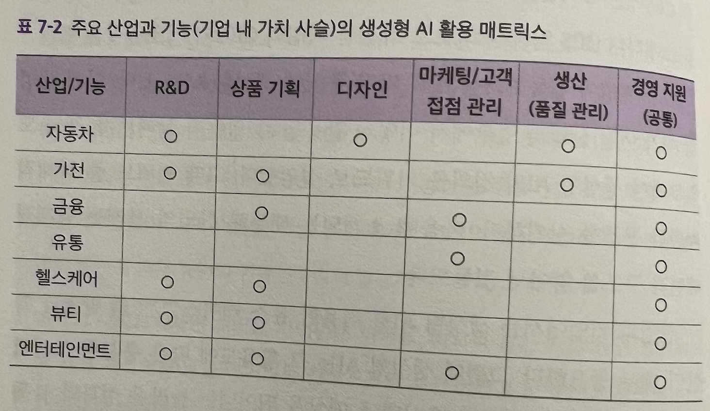 자동차, 가전, 금융등에 산업군별로 설명을 하면서, 실제 AI를 적용가능한 부분에 대한 매트릭스를 구성합니다.