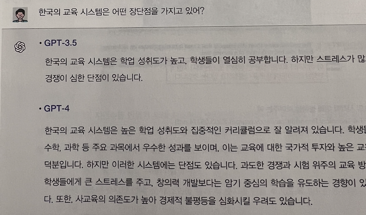 실습뿐만이 아니라, 기존 GPT의 기술적인 발전과 예전 버전과의 비교를 통해서 얼마나 기술의 발전이 되었는지 "동일한 질의어"를 GPT4 버전과 예전 버전과 대답한 결과를 비교하면서, 상대적으로 어떠한 부분이 개선되었는지 느낄수 있습니다.