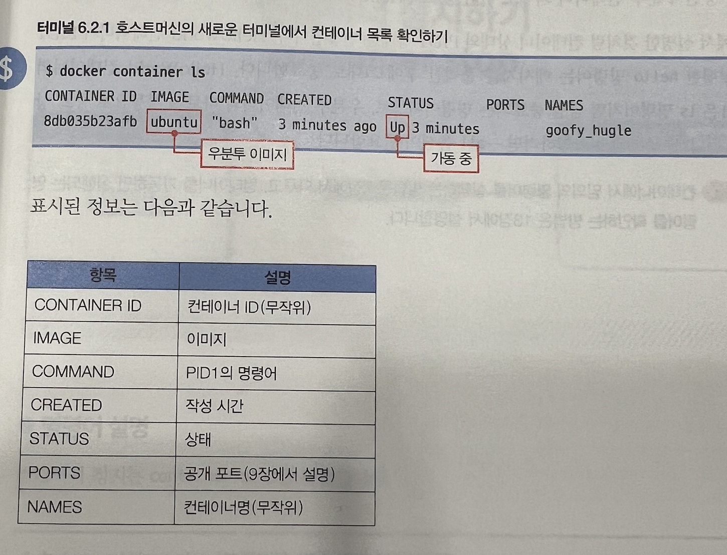 이러한 부분은 docker container is와 같은 가장 많이 사용하는 명령어를 수행시 노출되는 다양한 정보를 이해하는 것이 중요합니다.