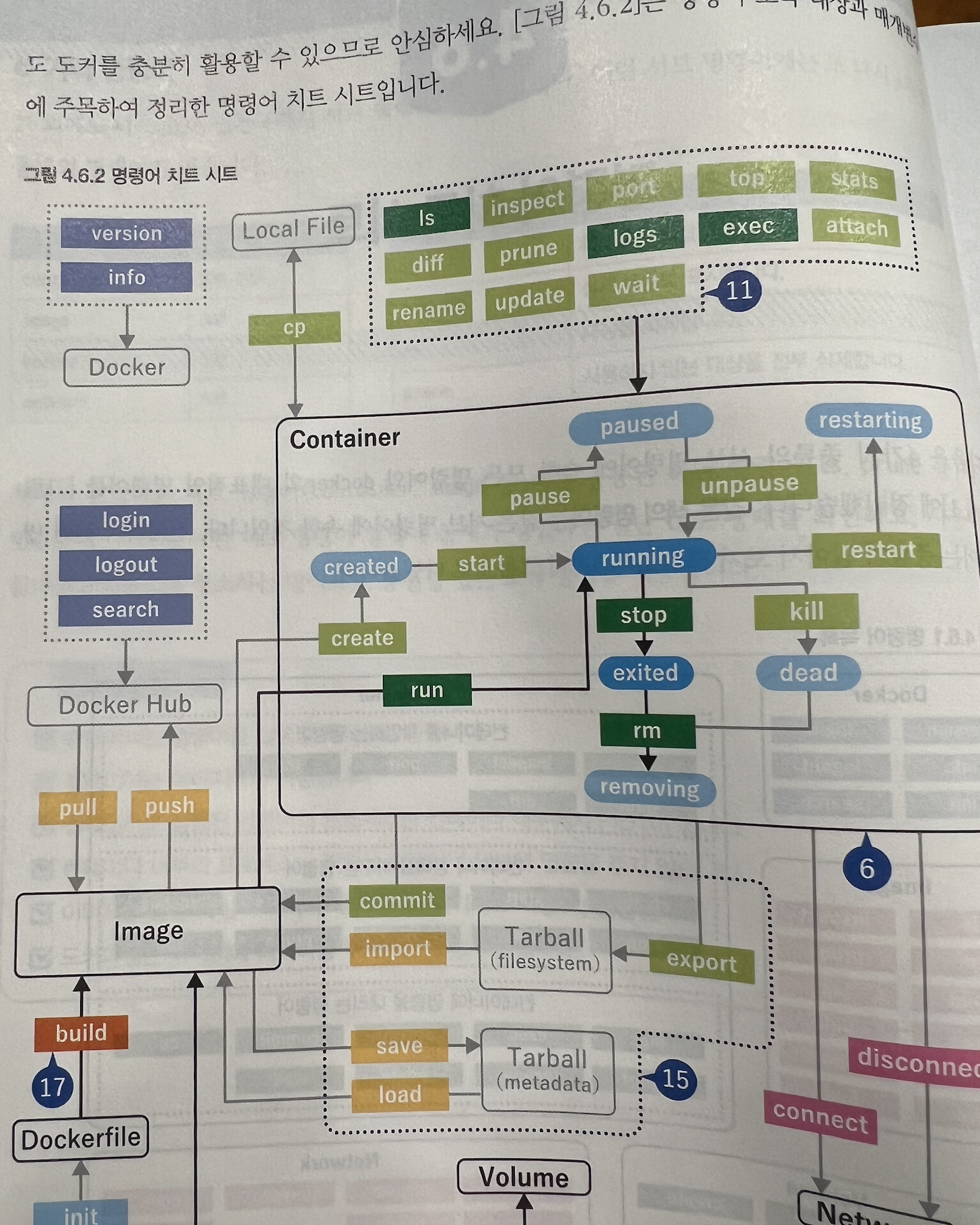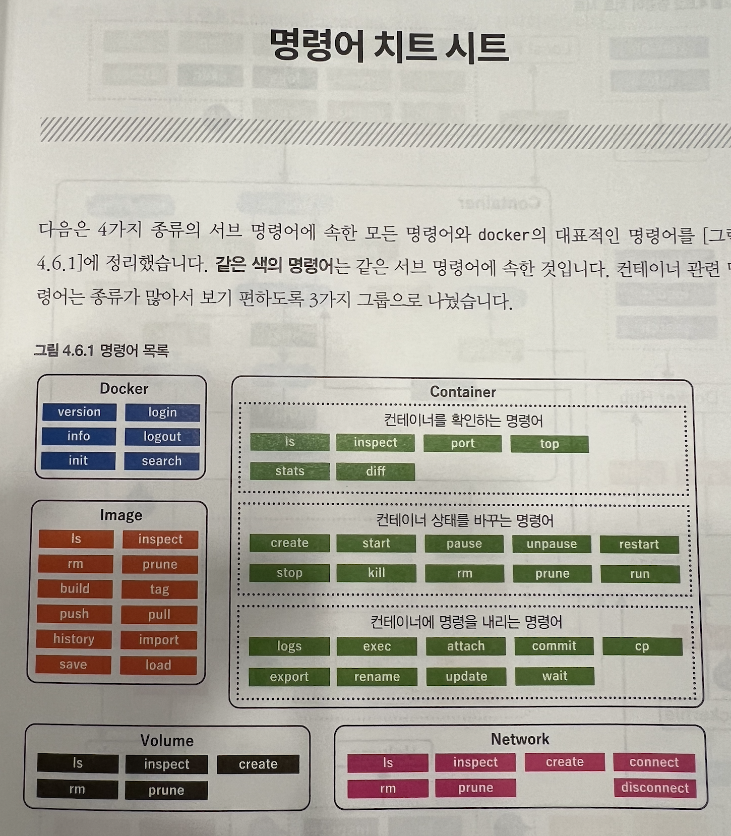 ls, inspect, port, top 등등 다양한 명령어가 p. 87에서 설명합니다.