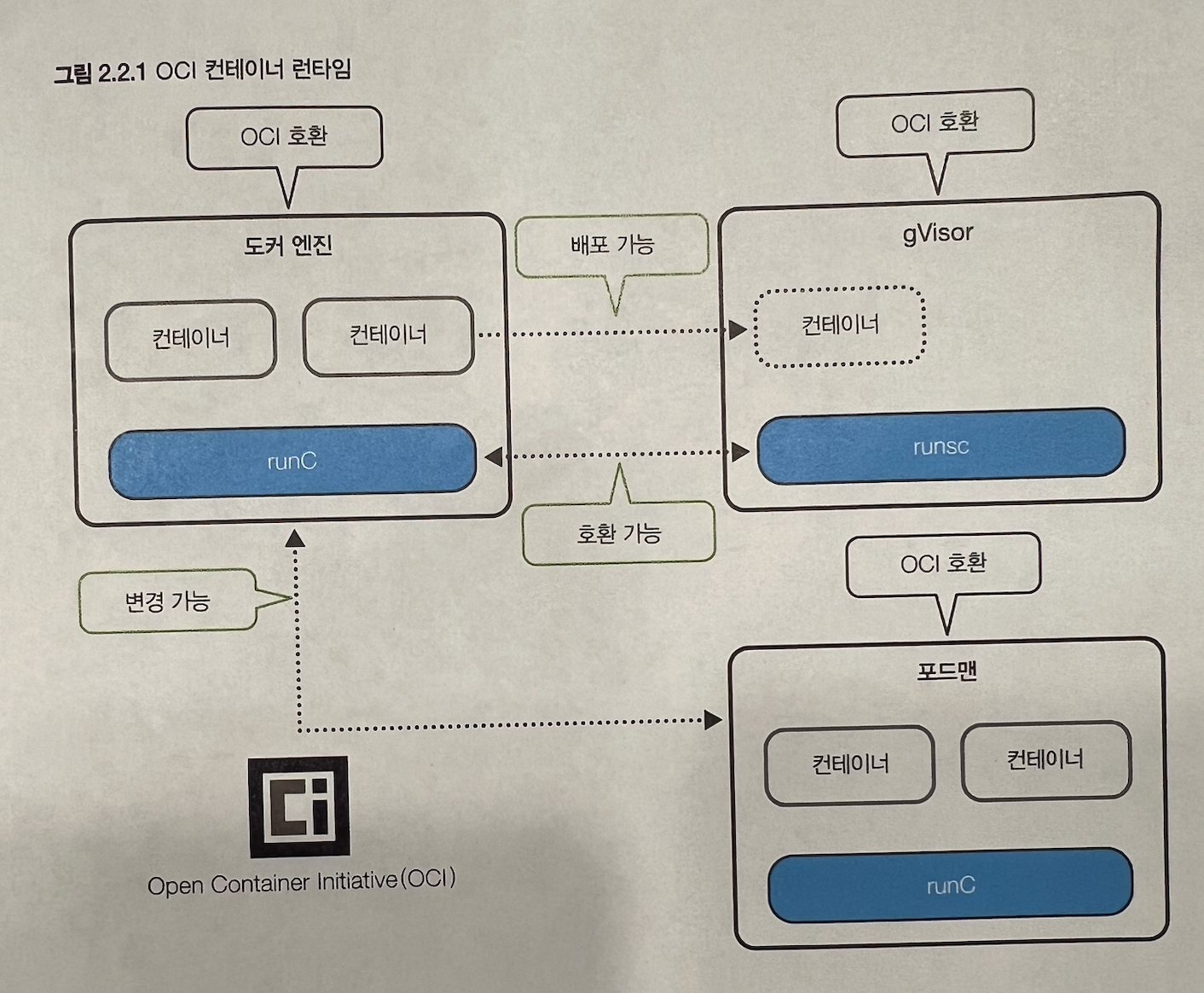 · OCI라는 용어를 이해해야 합니다. Open Container Initiative 라는 비영리 단체에서 컨테이너 표준규격을 정의합니다.