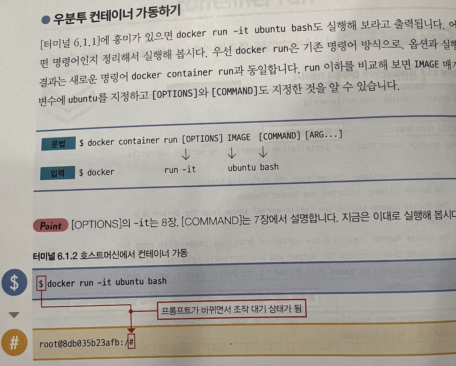 · 도커에서는 명령어를 수행하는데, 컨테이너 개념이 있기 때문에 조금 더 다른 관점으로 접근해야 합니다.