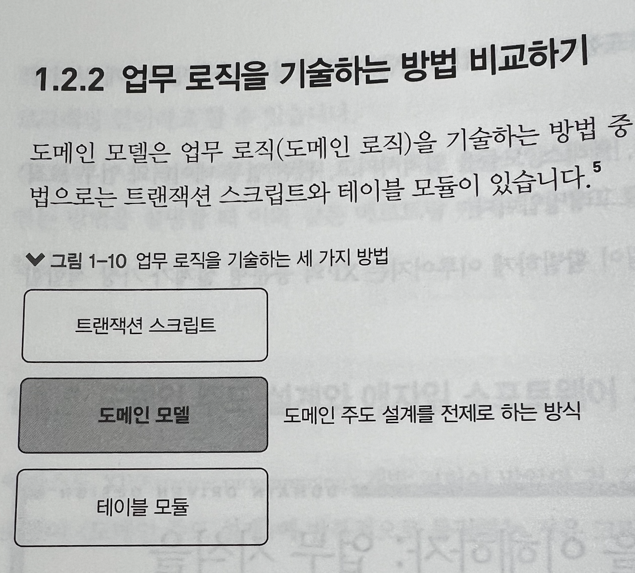 · 업무 로직을 개발하는 관점에서 우리는 일반적으로 기존에는 트랜잭션이나 DB의 테이블을 기준으로 설계를 많이 하였는데, 도메인 모델은 다른 접근법인것을 알려줍니다.