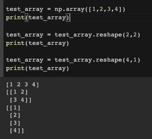 - 1차원 배열을 numpy의 reshape를 이용해서 다차원으로 변경하기