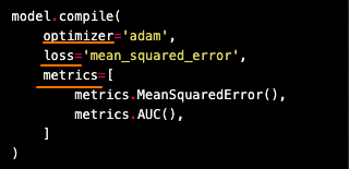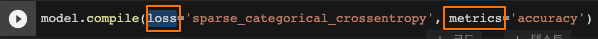 실습예제에서는 model.complie(loss=, metrics=)에 대해서 사용하고 있다.