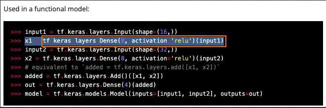 ④ model.add(keras.layers.Dense) (10, activation='relu')
