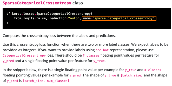 저희가 사용하는 loss class가 SparseCategoricalCrossentropy에 정의되어 있습니다.