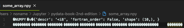 - 저장을 하면 확장자는 npy이고, 해당 파일의 내용은 binary형태의 파일이다.