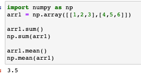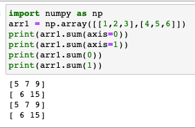 2가지 방식으로 추출 가능 : 배열.sum(), np.sum(배열) - 인자값으로 axis선언하는 방식