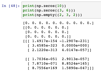 - np.zeros : 생성시, 값을 0으로 채워서 생성