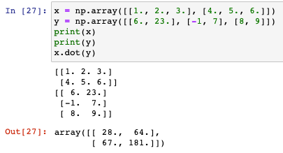 - x.dot(y) 는 np.dot(x,y)와 동일한 의미를 가진다.