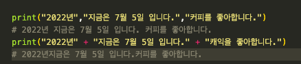 주석을 print()함수를 이용합니다.