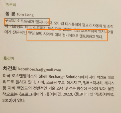 책의 저자분은 구글에서 근무하시고, 구글에서도 단순 엔지니어의 역활도 있지만,