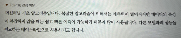 알고리즘의 장단점이 있고, 이런 현업의 의견은 시행착오를 줄여주는데 도움이 됩니다.